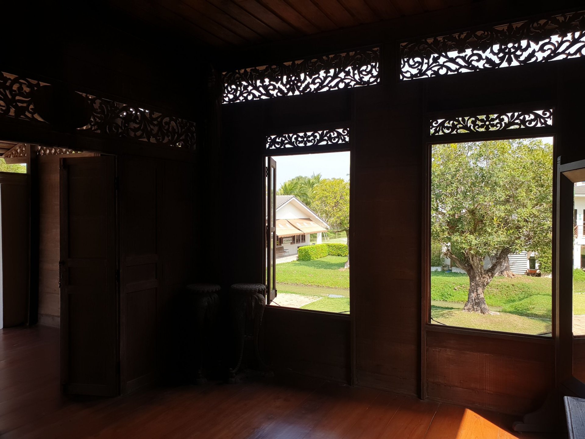 อีกจุดที่ไม่พาลูกเมียไปชมไม่ได้คือบ้านไม้โบราณสร้างในสมัยรัชกาลที่หก ของต้นตระกูล ’’ตันยุวรรธนะ’’ ที่ถอดย้ายจากเขตเวนคืนทำปล่องระบายอากาศของรถไฟฟ้าที่บางกอกน้อย มาตั้งใหม่อย่างสง่างามอยู่ที่นี่ งานไม้เข้ามุมละเอียด เครื่องใช้บางอย่างหาดูได้ยากแล้ว ช่างออกแบบเดิมทำวงกบและกรอบหน้าต่างบ้านให้สามารถเปิดหน้าต่างรับลมคลายร้อนได้ทุกฤดูกาล