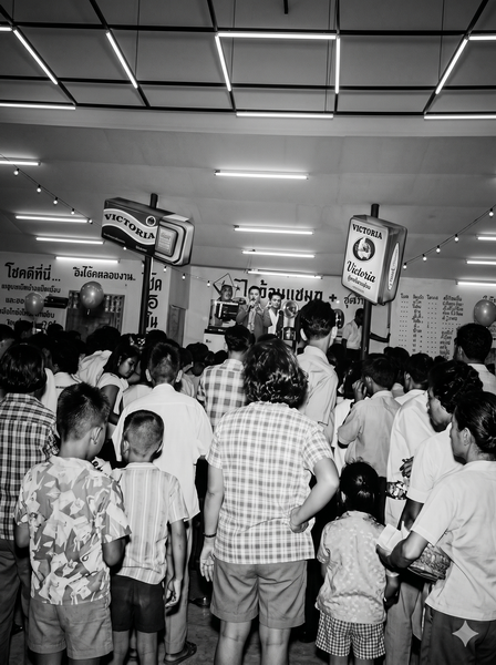 การใช้ป้ายสินค้า เช่น Victoria และ Lion ที่ยกสูงเหนือศีรษะผู้คน แสดงถึงความพยายามในการสร้าง brand visibility ในพื้นที่ที่มีการแข่งขันสูง